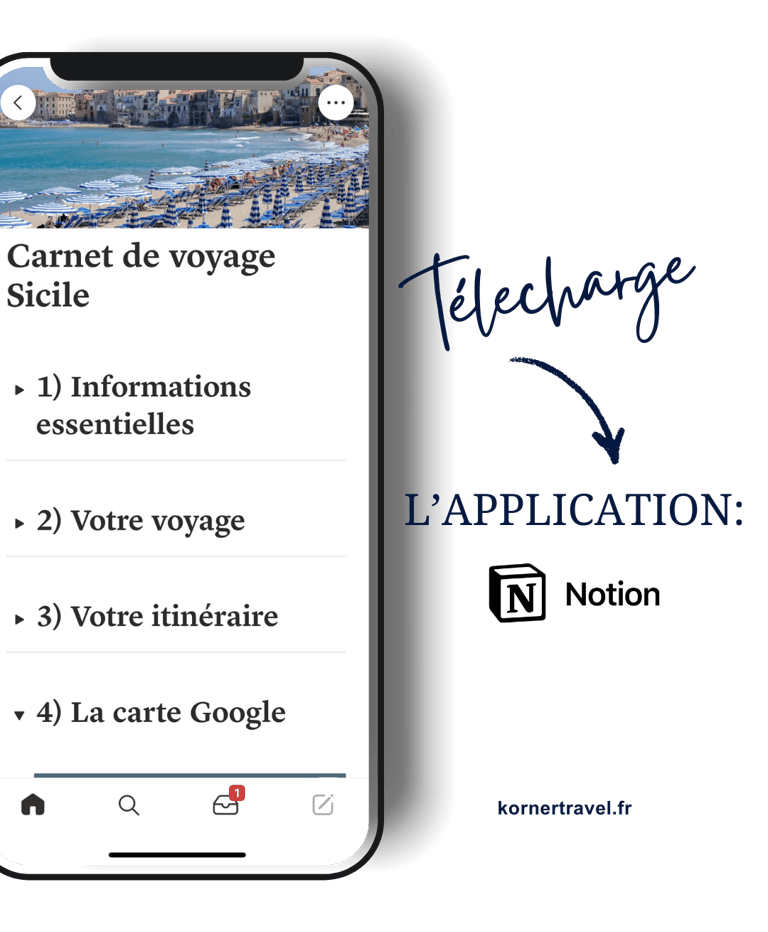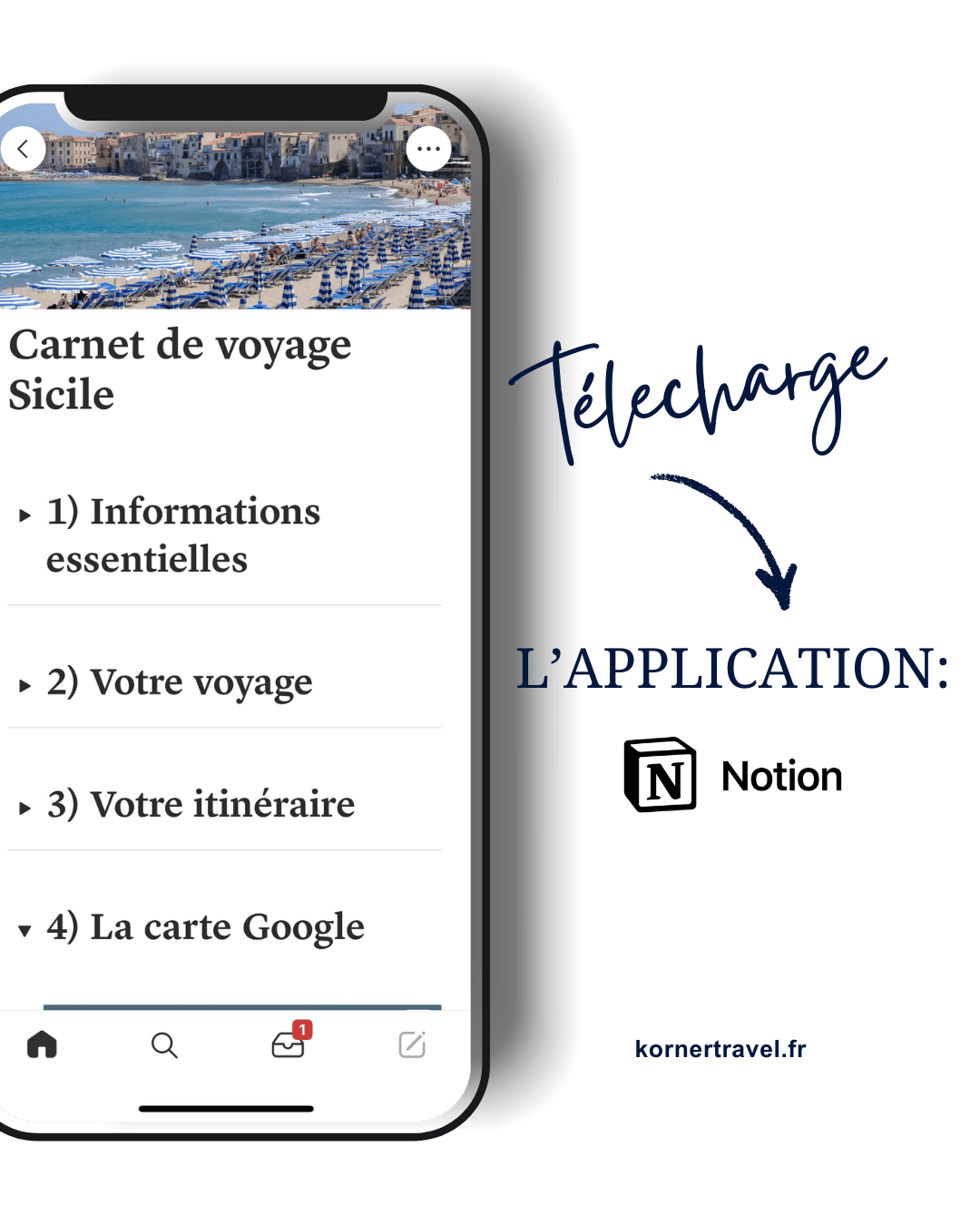 Votre carnet de voyage interactif est disponible sur l'application gratuite Notion, enrichi d'une carte Google Maps personnalisée pour vous repérer facilement et profiter pleinement de chaque étape du séjour.